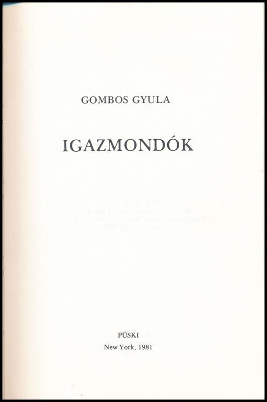 Gombos Gyula: Igazmondók. New York, 1981, Püski. Kiadói egészvászon-kö... https://www.darabanth.com/de/351-Fernauktion/351.0/Bucher/Bucher-Andere-kuriositaten~1000020/Gombos-Gyula-Igazmondok-New-York-1981-Puski-Kiadoi-egeszvaszon-kotes-kiadoi-kopott-pap~II1994750