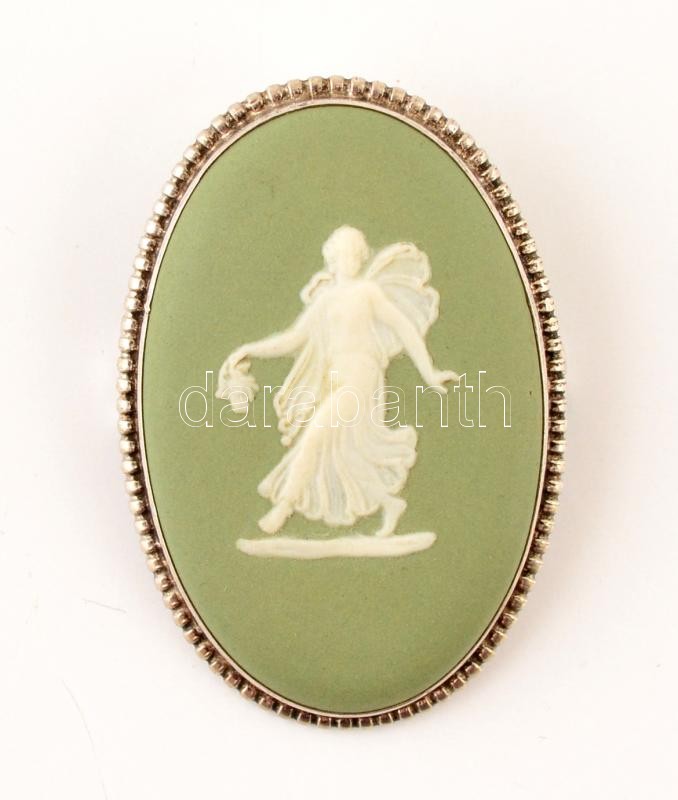 Beschreibung: Ezüst(Ag) bross Wedgwood porcelán berakással, jelzés nélkül, 4×2,5 cm, bruttó: 10,6 g