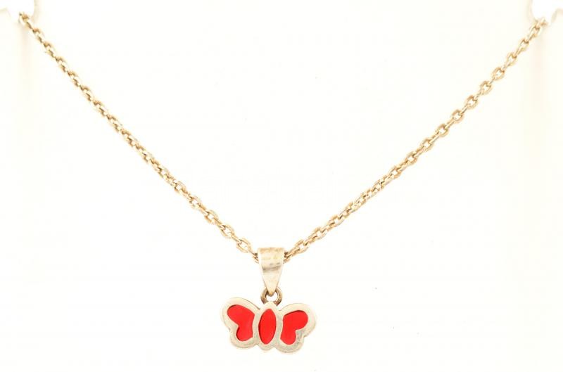 Beschreibung: Ezüst(Ag) nyaklánc, sérült, pillangós medállal, jelzés nélkül, h: 39 cm, bruttó: 5,2 g
