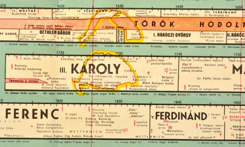 Urmánczy Antal: A magyar történet áttekintése a honfoglalás korától Bp. 1941. Kókai. 1 táblázat (nagyméretű, hajtogatott, színes) (Grafikus történelem-ábrázolás I. rész) 69 x 85 cm boríték nélkül