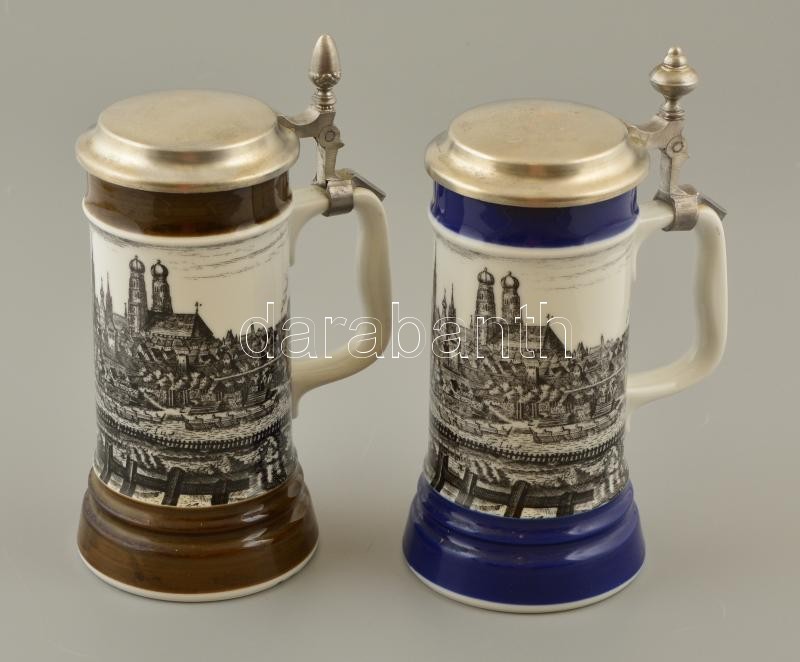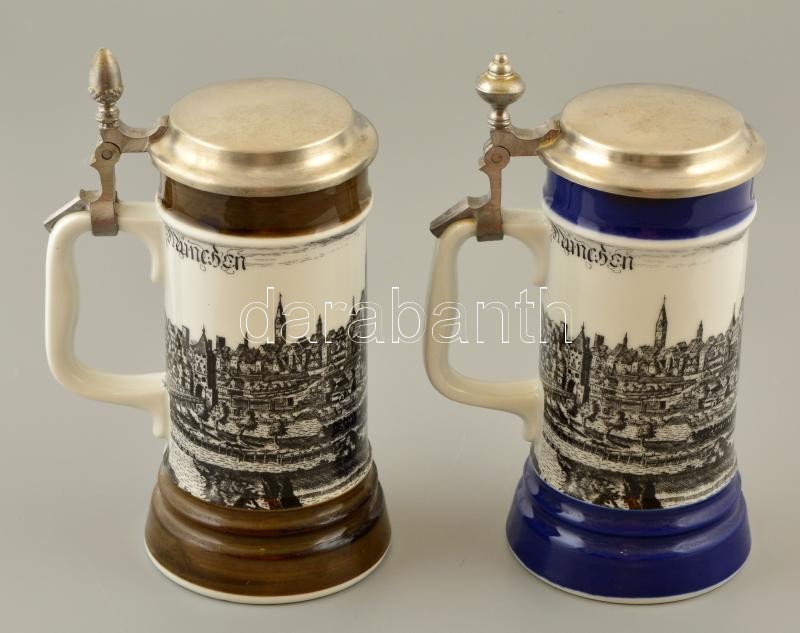 Müncheni szuvenírek: 2 db ón fedeles kerámia söröskorsó, jelzett, apró... https://www.darabanth.com/de/351-Fernauktion/351.0/Kunst-Dokumente-andere-Sammelgebiete/Flohmarkt~500011/Muncheni-szuvenirek-2-db-on-fedeles-keramia-soroskorso-jelzett-apro-kopasokkal-m-22-cm~II1995442