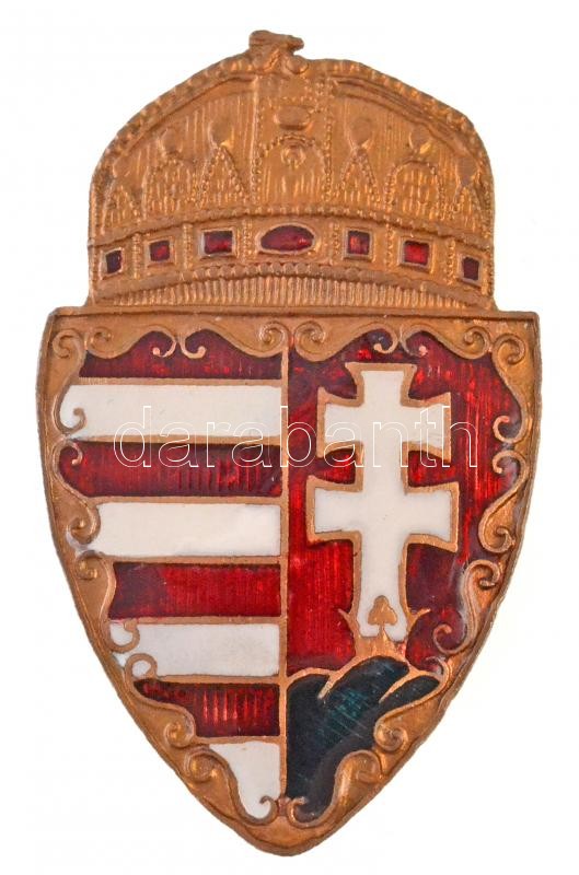 Beschreibung: DN Zománcozott magyar koronás címerpajzs, Br sapkajelvény (30x50mm) T:1-