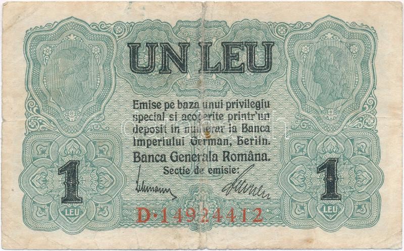 Romania/German Occupation 191... https://www.darabanth.com/de/351-Fernauktion/351.0/Numismatik/Weltweit-Banknoten~2000012/RomaniaNemet-megszallas-1917-1L-TIII-RomaniaGerman-Occupation-1917-1-Leu-CF~II1997433