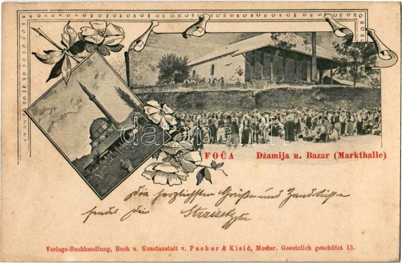1898 Foca, Dzamija u. Bazar / Martkhalle / market square, mosque. Art ... https://www.darabanth.com/de/352-Fernauktion/352.0/Ansichtskarten/Bosnien-und-Herzegowina~1000020/1898-Foca-Dzamija-u-Bazar-Martkhalle-market-square-mosque-Art-Nouveau-floral-Pacher-Kisi~II2004647