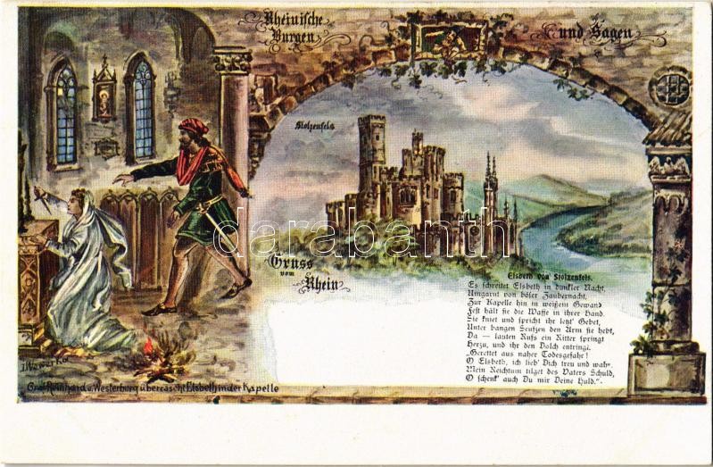 Koblenz, Stolzenfels, Graf Reinhard v. Westerburg überrascht Elsbeth i... https://www.darabanth.com/de/352-Fernauktion/352.0/Ansichtskarten/Deutschland~1000035/Koblenz-Stolzenfels-Graf-Reinhard-v-Westerburg-uberrascht-Elsbeth-in-der-Kapelle-Rheinische-Bur~II2001521