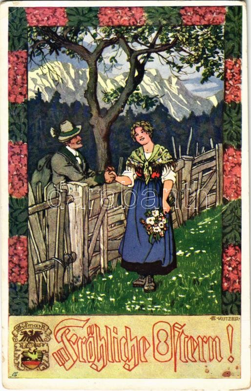 Beschreibung: 1912 'Fröhliche Ostern!' / Easter greeting card, couple; Verlag des Vereines Südmark, Karte Nr. 182 s: E. Kutzer (EK)