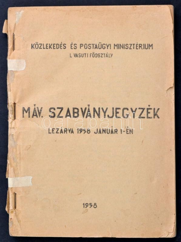 1958 MÁV szabványjegyzék 196p. https://www.darabanth.com/de/352-Fernauktion/352.0/Bucher/Bucher-Bahn-Lokomotive~2000012/1958-MAV-szabvanyjegyzek-196p~II2002795