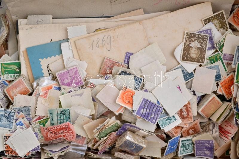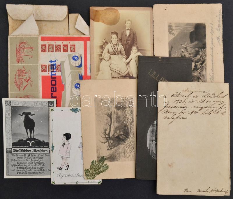 Beschreibung: Vegyes papírrégiség tétel, közte levelek, nyomtatványok, ex libris-szek, sok bélyeggel.