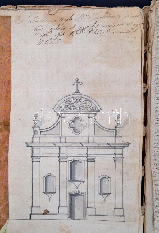 cca 1761-1777 Az egri egyházmegyével kapcsolatos iratmásolatok kéziratos gyűjteménye egy füzetben (uralkodói, pápai rendeletek, püspöki levelek, stb.), az elején néhány lap hiányzik, tartalommutatóval. Elején azonosítatlan helységben lévő Szent Erzsébet templom rajza, hátsó oldalon alaprajza. Bőrkötésben, érdekes, átnézésre érdemes anyag