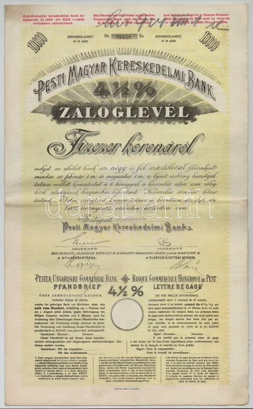 Budapest 1910. "Pesti Magyar Kereskedelmi Bank" 4 1/2% záloglevele 200... https://www.darabanth.com/de/352-Fernauktion/352.0/Numismatik/Aktien-und-Tickets~1500005/Budapest-1910-Pesti-Magyar-Kereskedelmi-Bank-4-12-zaloglevele-2000K-rol-szarazpecsettel-s~II2008502