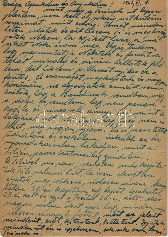 1942 Krausz Sándor zsidó 504/3 hadtáp KMSZ (közérdekű munkaszolgálatos) levele apjának Krausz Frigyesnek / WWII Letter of a Jewish labor serviceman to his father. Judaica (EK)