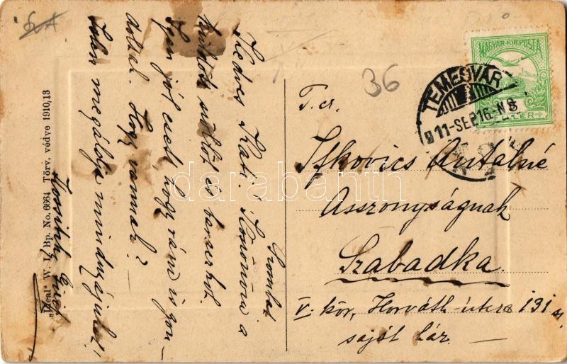 Beschreibung: 1911 Temesvár, Timisoara; Szent György tér, Takarékpénztár, Gresham kávéház, üzletek. "Ideal" W. L. Bp. 6664. / square, savings bank, café, shops (fl)