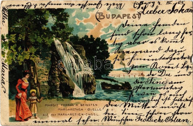Beschreibung: 1905 Budapest XIII. Margit forrás a Margitszigeten. Regel & Krug litho (szakadás / tear)