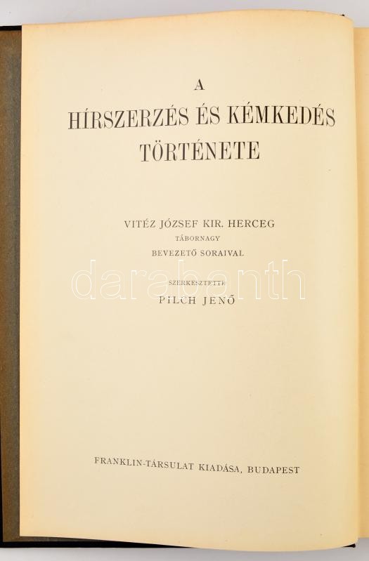 A hírszerzés és kémkedés története I-III. kötet. Vítéz József kir. herceg tábornagy bevezetős soraival. Szerk.: Pilch Jenő. Bp., é.n.[1936], Franklin-Társulat. Kiadói aranyozott egészvászon-kötés,