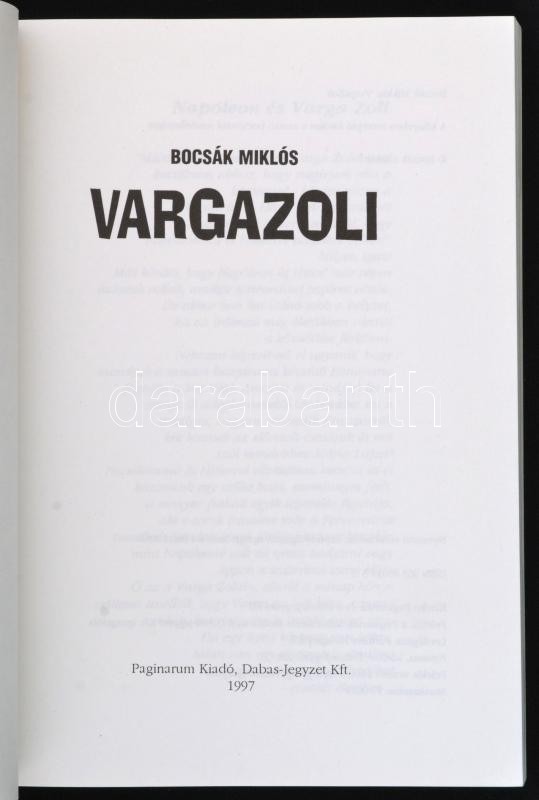 Bocsák Miklós: Vargazoli. Paginarum Kiadó, 1997. Kiadói papírkötés