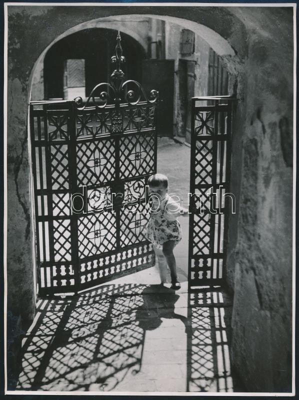Beschreibung: Vadas Ernő (1899-1962): Szabad-e bejönni?, művészfotó, hátulján pecséttel jelzett, 24×18 cm