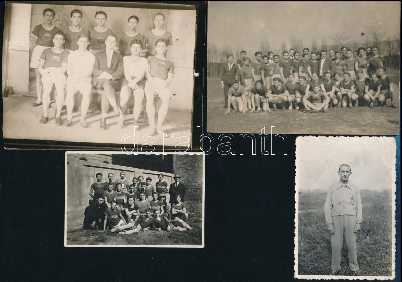 Beschreibung: cca 1927-1929 A Vasas SC sportolói, 4 db fotó, hátuljuko feliratozva, különböző méretben
