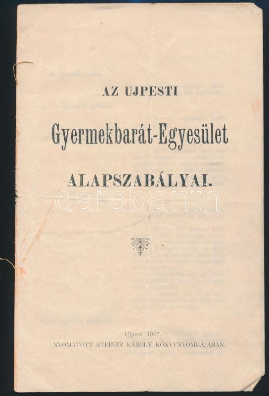 1897 Az Ujpesti Gyermekbarát Egyesület alapszabályai 8p. https://www.darabanth.com/de/353-Fernauktion/353.0/Kunst-Dokumente-andere-Sammelgebiete/Dokument~500017/1897-Az-Ujpesti-Gyermekbarat-Egyesulet-alapszabalyai-8p~II2010064