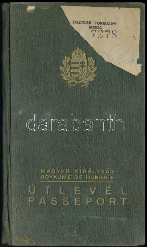 1937 Fényképes magyar útlevél bankigazgató özvegye részére https://www.darabanth.com/de/353-Fernauktion/353.0/Kunst-Dokumente-andere-Sammelgebiete/Dokument~500017/1937-Fenykepes-magyar-utlevel-bankigazgato-ozvegye-reszere~II2013344