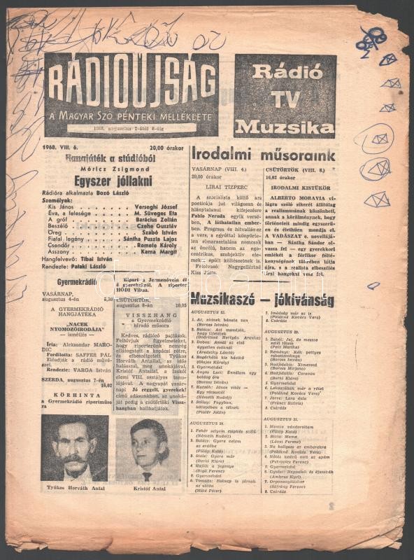 Vegyes retró újság tétel: 2 db Lobogó, 1 db Rádiújság, 1 db Béke és sz... https://www.darabanth.com/de/353-Fernauktion/353.0/Kunst-Dokumente-andere-Sammelgebiete/Drucksachen~500029/Vegyes-retro-ujsag-tetel-2-db-Lobogo-1-db-Radiujsag-1-db-Beke-es-szabadsag-peldanyo~II2016520