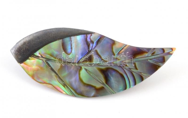 Beschreibung: Gyöngyház, levél alakú bross, 3,5×1,5 cm