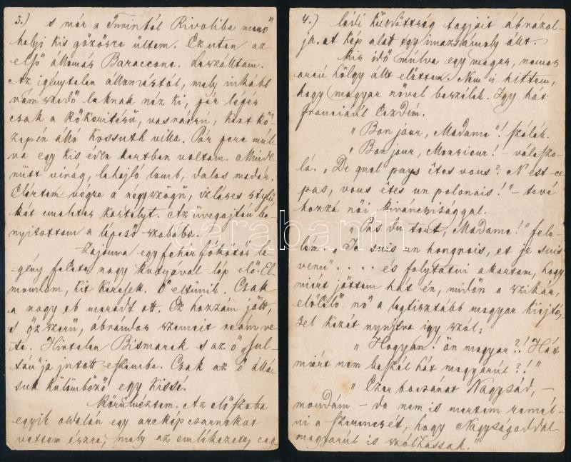 Beschreibung: 1874 Egy ifjú magyar zarándoklata Kossuth Lajoshoz Turinba. Az út élményeiről és a találkozásról írt útinapló 8 beírt füzetlapon