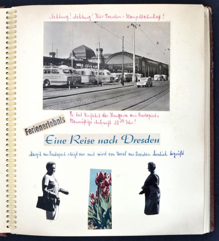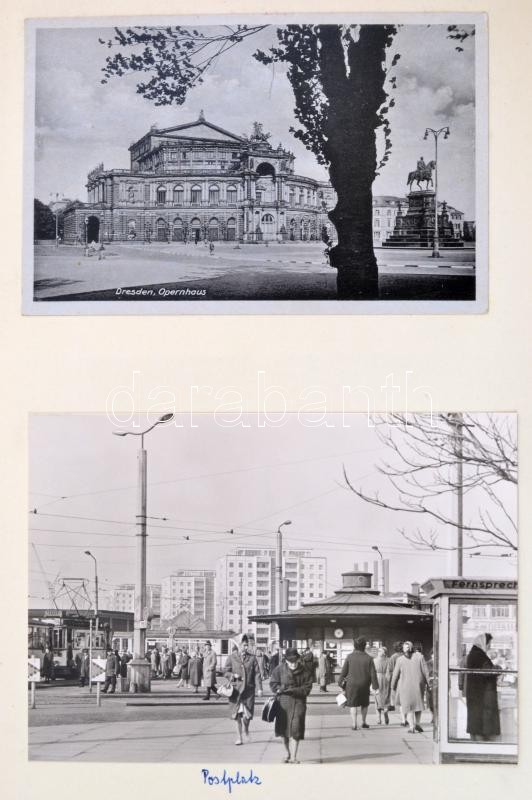 Beschreibung: cca 1945 Drezdai emlék: album számos újságkivágással, reklámmal, fotóval, fotólappal, feliratozva, érdekes, átnézésre érdemes összeállítás