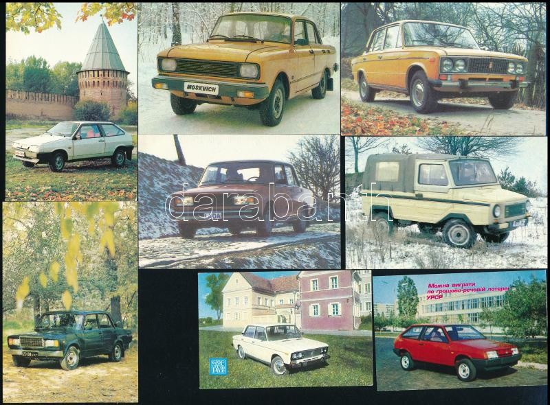 Beschreibung: cca 1980 Szovjet autók: Lada, Moszkvics, stb., 9 db kártyanaptár