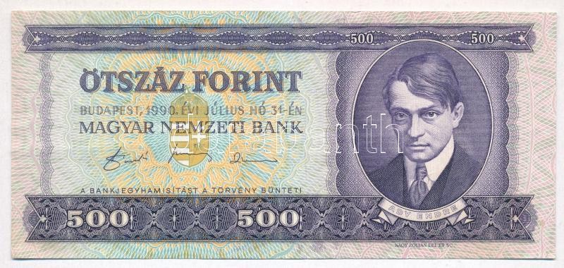 Adamo F43 https://www.darabanth.com/de/353-Fernauktion/353.0/Numismatik/Ungarische-Banknoten~1500007/1990-500Ft-TIII-szep-papir-Adamo-F43~II2013212