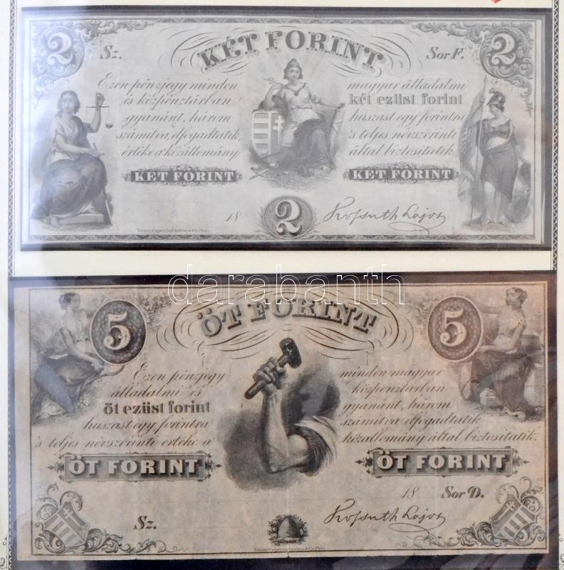Beschreibung: 40db-os vegyes magyar bankjegy tétel, albumba rendezve, néhány bélyeggel és képeslappal kísérve, közte 1852. 2Ft; 1852. 5Ft "Kossuth bankó" T:I-III-