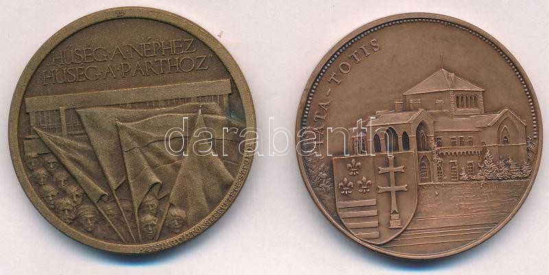 Bozó Gyula (1913-2004) 1993 "X. Mini marathon / Tata" Br emlékérem (42mm) + Lapis András (1942-) 1983. "MÉE Szeged - Komócsin Zoltán születésének 60. évfordulójára / Hűség a néphez, hűség a párthoz" Br emlékérem (42,5mm) T:2 ph.