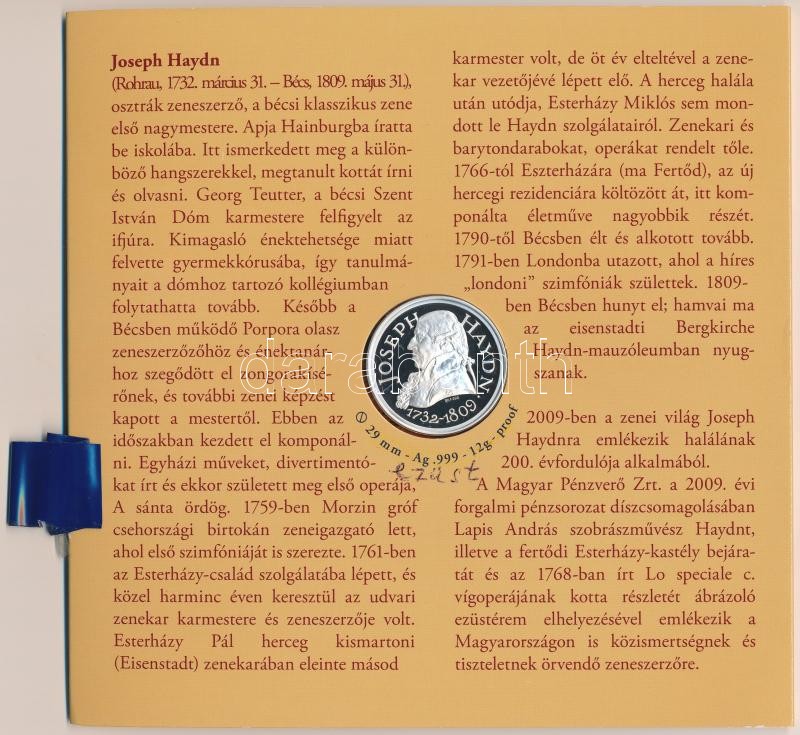 Beschreibung: 2009. 5Ft-200Ft "Haydn" (7xklf) forgalmi érme sor, benne "Joseph Haydn" Ag emlékérem (12g/0.999/29mm) T:BU tok firkált és ragasztott