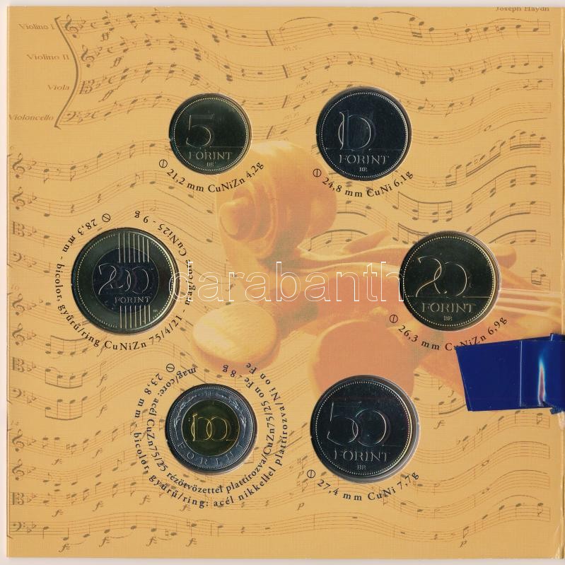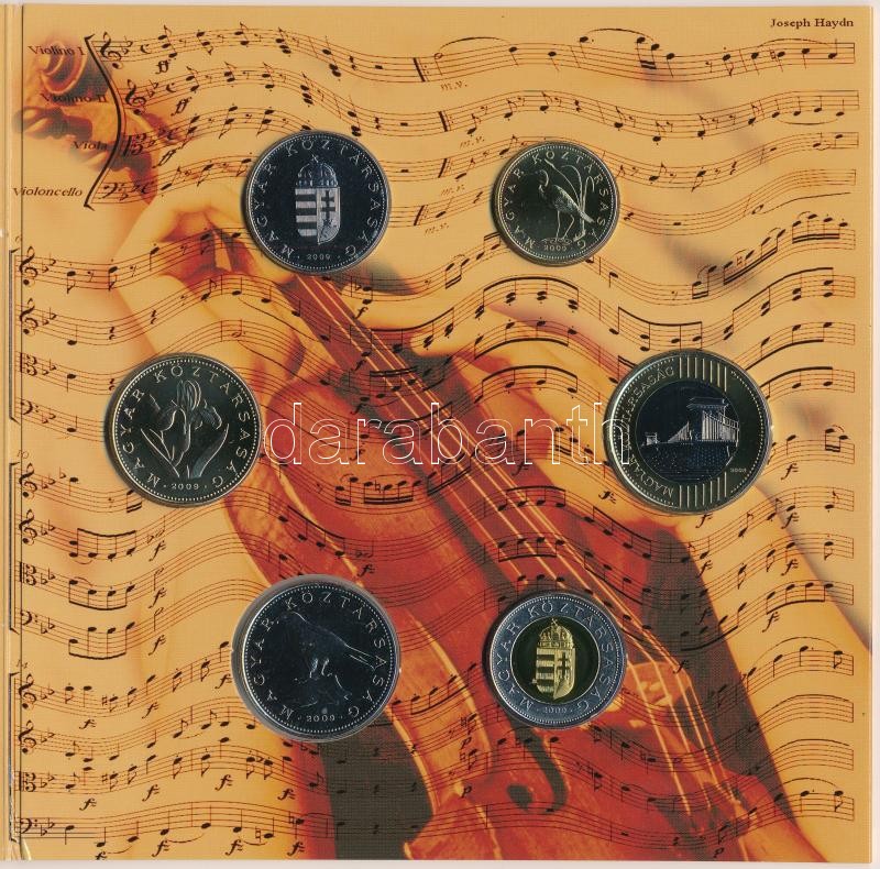 2009. 5Ft-200Ft "Haydn" (7xklf) forgalmi érme sor, benne "Joseph Haydn... https://www.darabanth.com/de/353-Fernauktion/353.0/Numismatik/Ungarische-Munzen-und-Munzen-mit-ungarischem-Munzzeichen~1500008/2009-5Ft-200Ft-Haydn-7xklf-forgalmi-erme-sor-benne-Joseph-Haydn-Ag-emlekerem-12g09992~II2013405