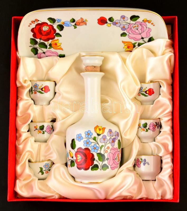 Kalocsai pálinkás készlet, kézzel festett, jelzett, hibátlan, eredeti ... https://www.darabanth.com/de/353-Fernauktion/353.0/Porzellan-Keramik-Glass/Porzellan~500007/Kalocsai-palinkas-keszlet-kezzel-festett-jelzett-hibatlan-eredeti-dobozaban-m18-cm-21C3977~II2014073
