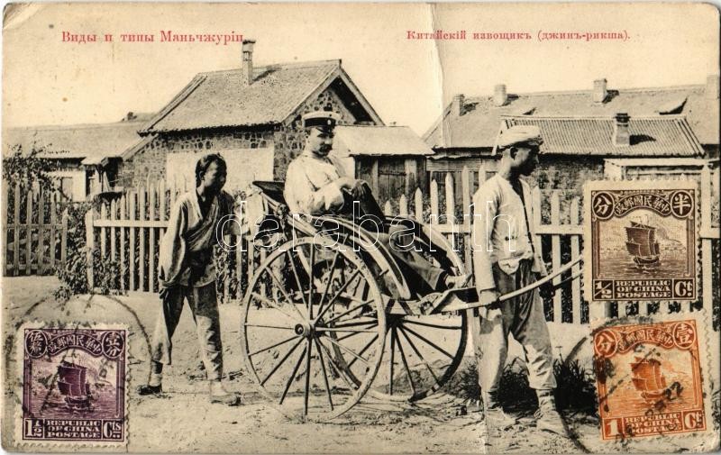 Manchuria, Chinese rickshaw. TCV card (fa) https://www.darabanth.com/de/354-Fernauktion/354.0/Ansichtskarten/China~1000043/Manchuria-Chinese-rickshaw-TCV-card-fa~II2024328