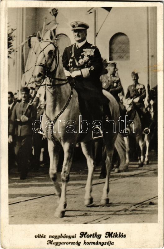 Vitéz Nagybányai Horthy Miklós Magyarország kormányzója bevonuláskor, ... https://www.darabanth.com/de/354-Fernauktion/354.0/Ansichtskarten/Herrscher-Politiker-Konigshauser~1000095/Vitez-Nagybanyai-Horthy-Miklos-Magyarorszag-kormanyzoja-bevonulaskor-feher-lovon-Horthy-o~II2017877