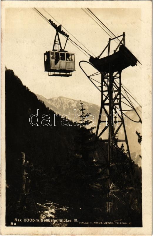 1928 Rax, Seilbahn Stütze III. / cable car + "Oesterr. Bergbahnen... https://www.darabanth.com/de/354-Fernauktion/354.0/Ansichtskarten/Osterreich~1000020/1928-Rax-Seilbahn-Stutze-III-cable-car-plus-Oesterr-Bergbahnen-A-G-Raxbahn-cancellation~II2016236