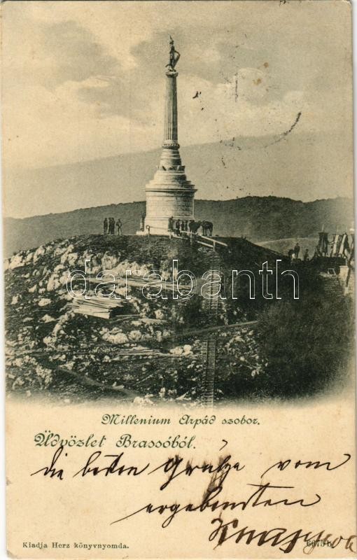1899 Brassó, Kronstadt, Brasov; Millenniumi Árpád szobor, emlékmű. Kia... https://www.darabanth.com/de/354-Fernauktion/354.0/Ansichtskarten/Siebenburgen~1000006/1899-Brasso-Kronstadt-Brasov-Millenniumi-Arpad-szobor-emlekmu-Kiadja-a-Herz-konyvnyomda-~II2019193