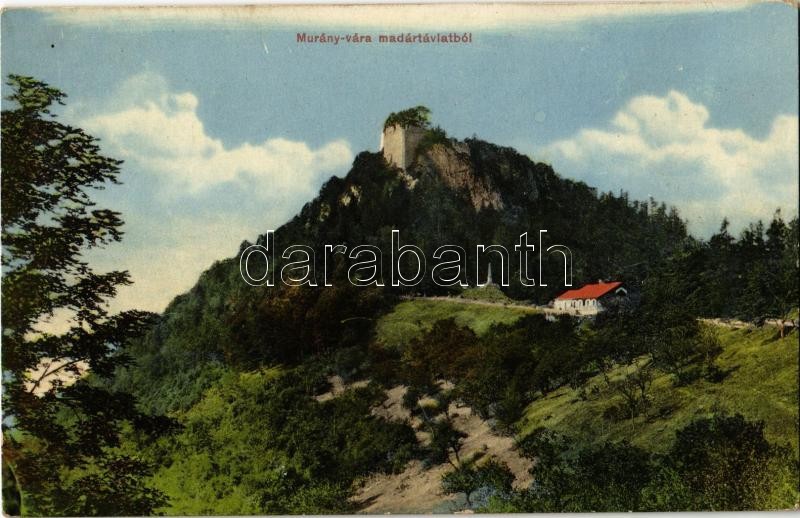1914 Murány, Murányalja, Podmurán, Murán; Murány vára madártávlatból és az 1848-49-es honvéd emlékmű, obeliszk. Kiadja Fehér Dezső / Muransky hrad / castle, memorial obelisk of the Hungarian Revolution in 1848 (ragasztónyom / glue marks)