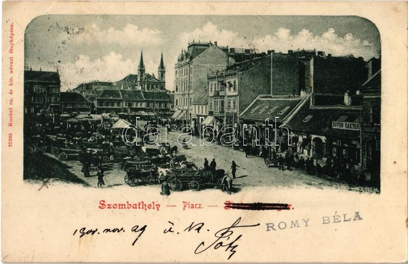 Beschreibung: 1900 Szombathely, Piac, piaci árusok szekerekkel, bútorraktár, Deutsch Miksa, Leszler üzlete. Knebel cs. és kir. udvari fényképész felvétele (EK)