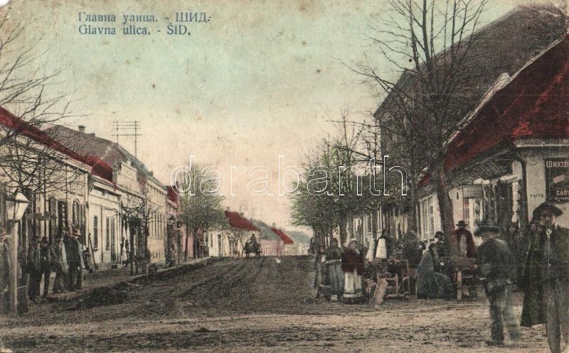 Sid, Glavna ulica / Fő utca, üzletek / main street, shops (EM) https://www.darabanth.com/de/354-Fernauktion/354.0/Ansichtskarten/Vojvodina~1000010/Sid-Glavna-ulica-Fo-utca-uzletek-main-street-shops-EM~II1908909