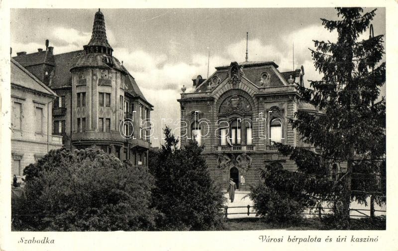 Szabadka, Subotica; Városi bérpalota és úri kaszinó / casino (EK) https://www.darabanth.com/de/354-Fernauktion/354.0/Ansichtskarten/Vojvodina~1000010/Szabadka-Subotica-Varosi-berpalota-es-uri-kaszino-casino-EK~II1909135