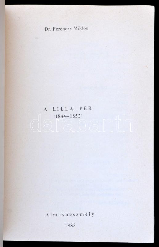 Ferenczy Miklós: A Lilla-per 1844-1852. Almásneszmély, 1985, szerzői. ... https://www.darabanth.com/de/354-Fernauktion/354.0/Bucher/Bucher-Andere-kuriositaten~2000017/Ferenczy-Miklos-A-Lilla-per-1844-1852-Almasneszmely-1985-szerzoi-Papirkotesben-jo-all~II2023761