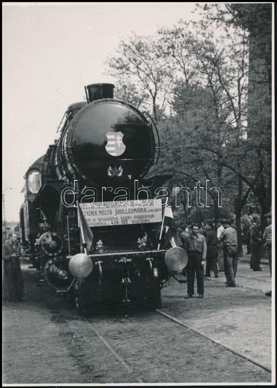 1949 A Tanácsköztársaság jubileumára, mozdony címerrel, 11,5×8 cm https://www.darabanth.com/de/354-Fernauktion/354.0/Fotografie/Foto~500021/1949-A-Tanacskoztarsasag-jubileumara-mozdony-cimerrel-11-5C3978-cm~II2024068