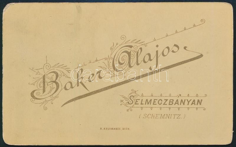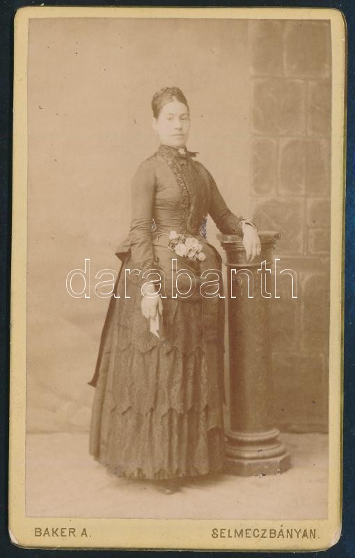 cca 1880-1900 Hölgy műtermi portréja, keményhátú fotó Baker Alajos sel... https://www.darabanth.com/de/354-Fernauktion/354.0/Fotografie/Foto~500021/cca-1880-1900-Holgy-mutermi-portreja-kemenyhatu-foto-Baker-Alajos-selmecbanyai-mutermebC5~II2022206