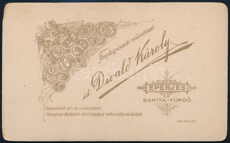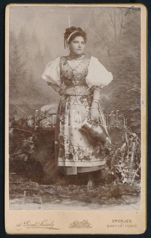 cca 1885 Szép népviseletbe öltözött lány kannával, keményhátú fotó id.... https://www.darabanth.com/de/354-Fernauktion/354.0/Fotografie/Foto~500021/cca-1885-Szep-nepviseletbe-oltozott-lany-kannaval-kemenyhatu-foto-id-Divald-Karoly-18~II2021094