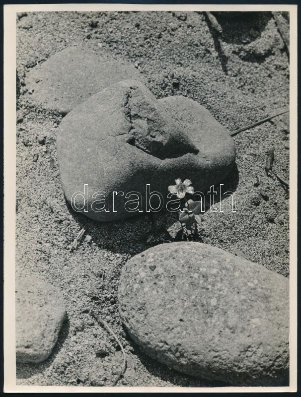 Beschreibung: cca 1935 Kinszki Imre (1901-1945) budapesti fotóművész pecséttel jelzett vintage fotóművészeti alkotása, (kavics és virág), 23,5x18 cm