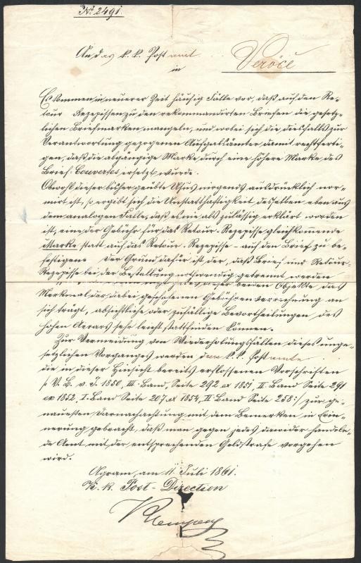 1861 A zágrábi postaigazgatóság német nyelvű sokszorosított levele a v... https://www.darabanth.com/de/354-Fernauktion/354.0/Kunst-Dokumente-andere-Sammelgebiete/Dokument~500018/1861-A-zagrabi-postaigazgatosag-nemet-nyelvu-sokszorositott-levele-a-verocei-Vitrovica-pos~II2021516