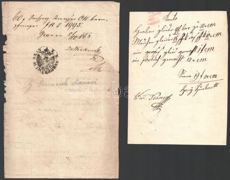 1863 5 db számla és fizetési meghagyás német nyelven, benne Esztergom ... https://www.darabanth.com/de/354-Fernauktion/354.0/Kunst-Dokumente-andere-Sammelgebiete/Dokument~500018/1863-5-db-szamla-es-fizetesi-meghagyas-nemet-nyelven-benne-Esztergom-varos-fizetesi-meghagyC3~II2022388