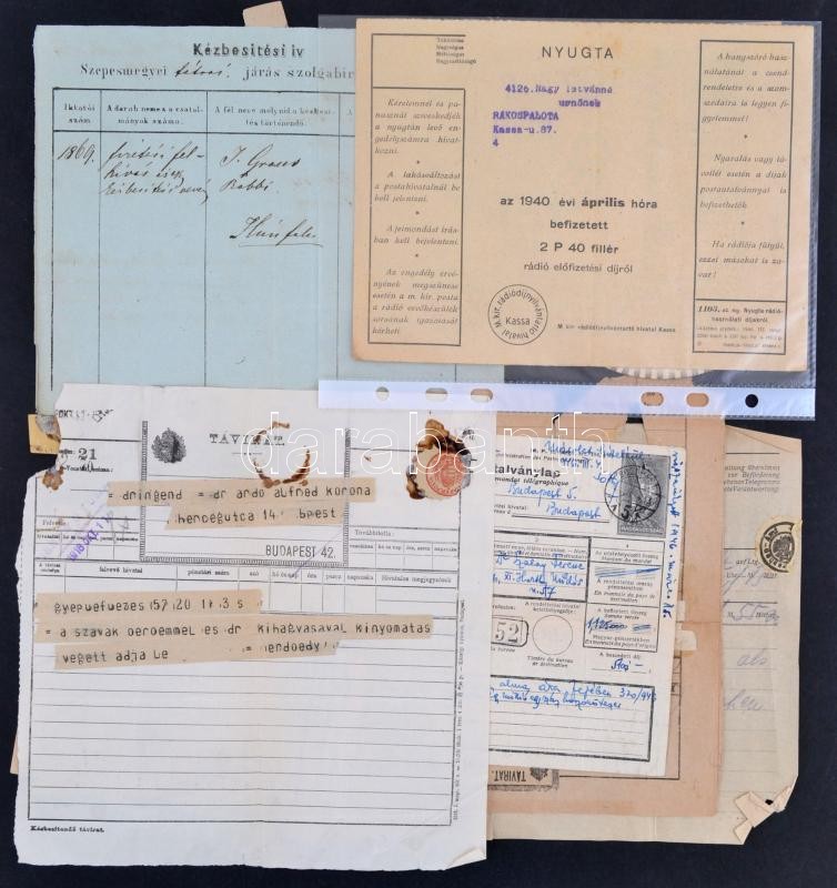 Vegyes kis papírrégiség tétel: táviratok, kézbesítési ív (1869), stb.,... https://www.darabanth.com/de/354-Fernauktion/354.0/Kunst-Dokumente-andere-Sammelgebiete/Dokument~500018/Vegyes-kis-papirregiseg-tetel-taviratok-kezbesitesi-iv-1869-stb-osszesen-6-db~II2017904